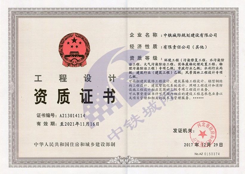 環(huán)保工程(污染修復(fù)工程、水污染防治工程、大氣污染防治工程、固體廢物處置工程、物理污染防治工程)專項乙級;市政行業(yè)乙級;水利行業(yè)丙級;建筑行業(yè)(建筑工程)乙級;風(fēng)景園林工程設(shè)計專項乙級。