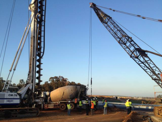 (5)檢查鉆頭、鉆桿直徑是否滿足要求。如果發現鉆頭、磨損嚴重,應及時補焊,在外緣鑲合金塊,確保孔徑及保護層滿足要求。使鋼筋籠與孔壁間有足夠的空間,使鋼筋籠順利到位。