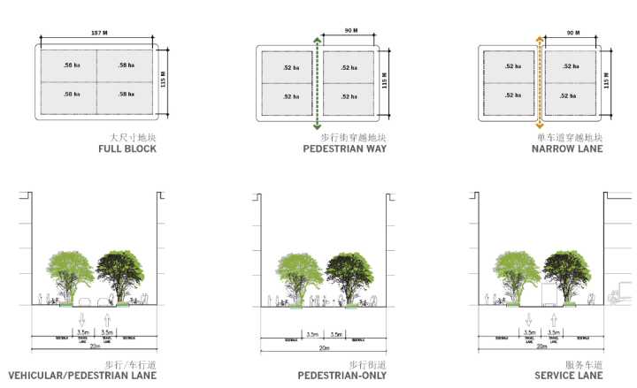 故事講的很特別,但是觀點(diǎn)并沒有什么新的,且不說中央前段時(shí)間提出的開放街區(qū),即便在很久很久以前,這在城市設(shè)計(jì)實(shí)踐領(lǐng)域便已著手實(shí)踐(下圖來自[SOM][2008]武漢王家墩商務(wù)核心區(qū)設(shè)計(jì)規(guī)劃方案)
