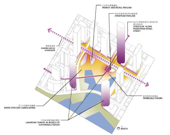 這樣的思考——實(shí)在是沒有建樹,隨手翻一個(gè)早年的som的城市設(shè)計(jì)方案,就已然做出應(yīng)對,對于街道空間連續(xù)性的思考(下圖來自[SOM][2008]武漢王家墩商務(wù)核心區(qū)設(shè)計(jì)規(guī)劃方案)