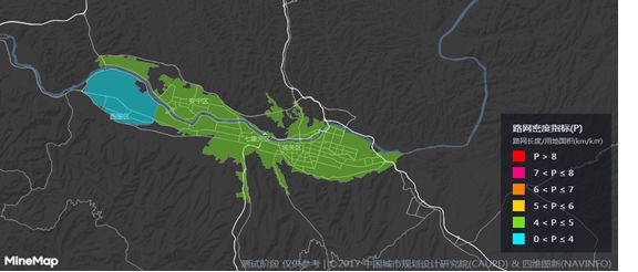 依托大數(shù)據(jù)平臺Minedata,中規(guī)院聯(lián)合四維圖新打造了一個以路網(wǎng)為基礎的數(shù)據(jù)可視化平臺,實現(xiàn)了城市道路網(wǎng)絡的動態(tài)監(jiān)測,克服了傳統(tǒng)城市工作中道路網(wǎng)密度統(tǒng)計標準不統(tǒng)一、數(shù)據(jù)更新時效性差等問題,為合理控制城市道路網(wǎng)密度、促進城市交通規(guī)劃的落實提供了有效支持。