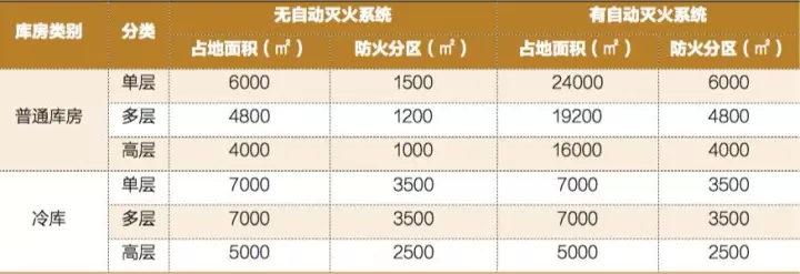 4.倉(cāng)庫(kù)占地面積和防火分區(qū)(僅供一般性參考,視具體情況而定)