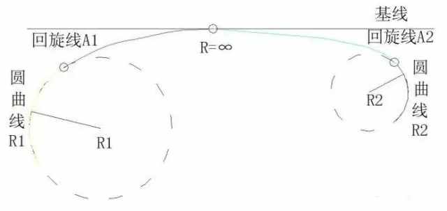 緩和曲線1+圓曲線1+緩和曲線(過渡)+圓曲線2+緩和曲線2