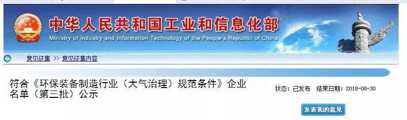 工信部公示符合《環(huán)保裝備制造行業(yè)(大氣治理)規(guī)范條件》企業(yè)名單(第三批,含VOCs)