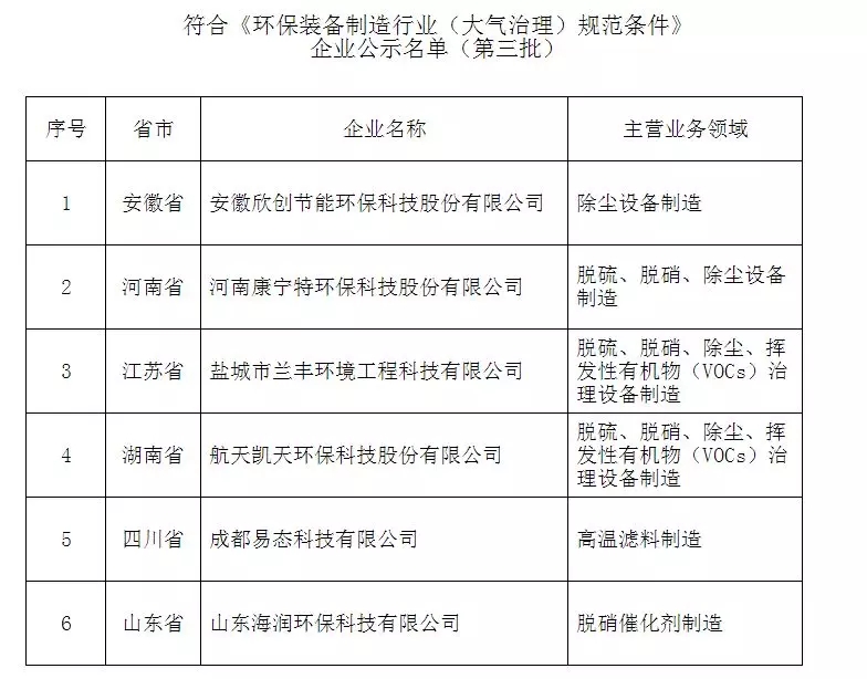 附件:符合《環(huán)保裝備制造行業(yè)(大氣治理)規(guī)范條件》企業(yè)公示名單(第三批)