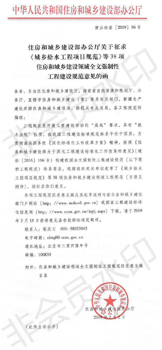 日前,住房和城鄉(xiāng)建設(shè)部辦公廳發(fā)布《關(guān)于征求<城鄉(xiāng)給水工程項目規(guī)范>等38項住房和城鄉(xiāng)建設(shè)領(lǐng)域全文強(qiáng)制性工程建設(shè)規(guī)范意見的函》,公布了《建筑和市政工程防水通用規(guī)范》征求意見稿。