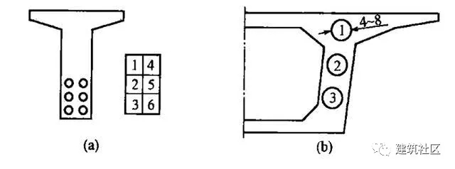 1)在橫斷面圖中,宜將編號(hào)標(biāo)注在與預(yù)應(yīng)力鋼筋斷面對(duì)應(yīng)的方格內(nèi)[圖2-46(a)]。
