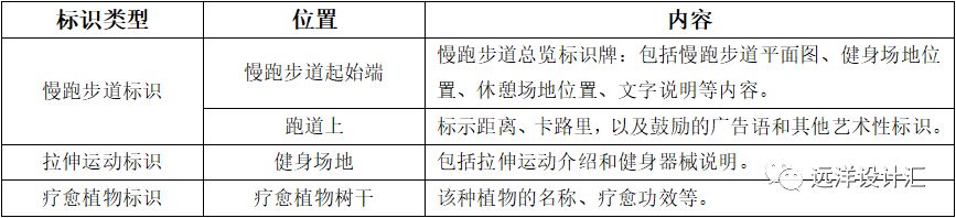 居住區慢跑步道標識應包括以下內容,見表3-3: