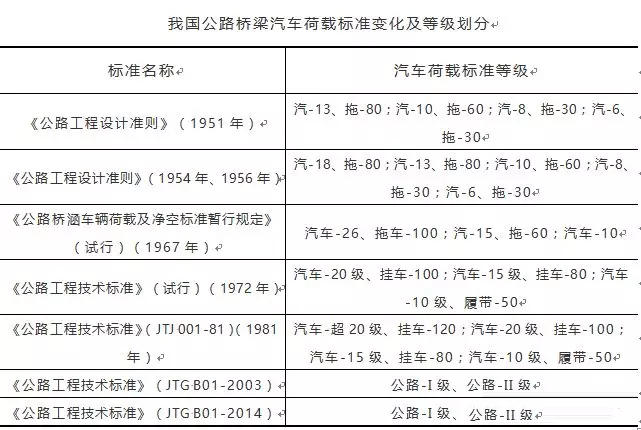 我國(guó)公路橋梁汽車(chē)荷載標(biāo)準(zhǔn)變化及等級(jí)劃分