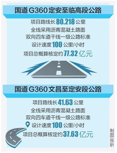 2019年8月,省發(fā)展改革委批復(fù)了國道G360定安至臨高段公路初步設(shè)計和概算。項目路線長80.218公里,全線采用瀝青混凝土路面,雙向四車道干線一級公路標準,設(shè)計速度100公里/小時。項目總概算核定約77.32億元。