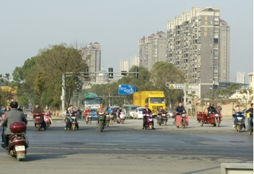 ?。ㄈC動車與非機動車、行人混行,爭搶路權沖突嚴重,存在交通安全隱患,如圖-3所示。