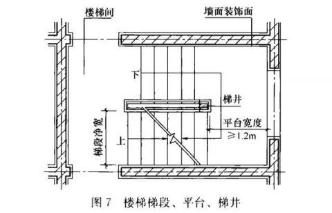 新規(guī)范:6.8.4 當(dāng)梯段改變方向時(shí),扶手轉(zhuǎn)向端處的平臺(tái)最小寬度不應(yīng)小于梯段凈寬,并不得小于1.2m。當(dāng)有搬運(yùn)大型物件需要時(shí),應(yīng)適量加寬。直跑樓梯的中間平臺(tái)寬度不應(yīng)小于0.9m。