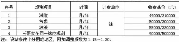 注:1.海況分級見《海濱觀測規范》;2.本表同時具備兩項及以上因素的,按照最高類別計算收費。