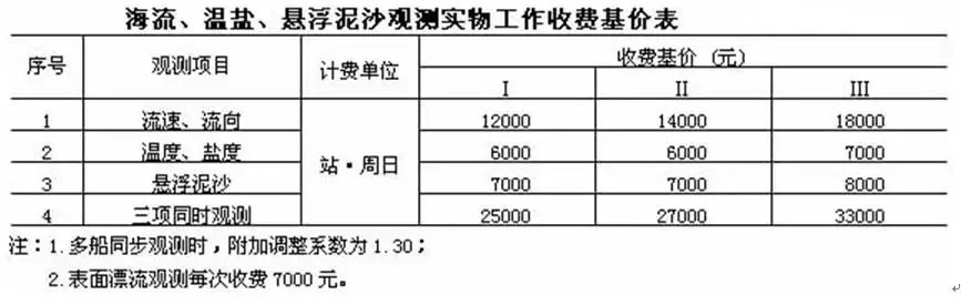 注:1.單波束測量執行通用工程勘察水域測量收費標準;