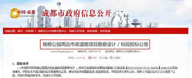 簡陽城北方向的公園方案昨日,簡陽市四川雄州實(shí)業(yè)有限責(zé)任公司正式啟動(dòng)了《楊柳公園周邊市政道路項(xiàng)目勘察設(shè)計(jì)》的招標(biāo),從招標(biāo)信息中我們可知以下信息: