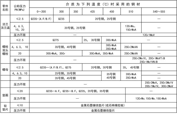 動力管道法蘭型式選用表