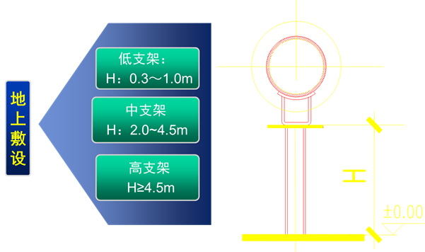 地上敷設:低支架,中支架,高支架。