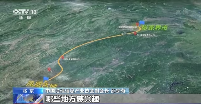 中國地理信息產業協會副會長 邵宗有:比如我們要去張家界旅游,通過它的高空數據,就可以大致地瀏覽一下整個張家界景區,哪些地方感興趣,你可以設計出旅游的路線。