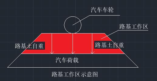 路基工作區(qū):是指汽車荷載通過(guò)路面?zhèn)鬟f到路基的應(yīng)力與路基土自重應(yīng)力之比大于0.1的應(yīng)力分布范圍。