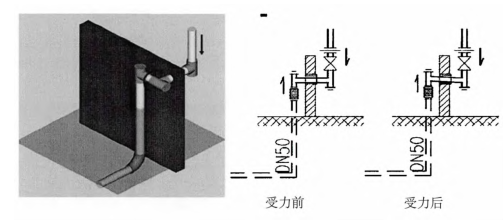 建筑的沉陷對煤氣管線的結構設計有很大的影響。高層建筑因其自身的自重,其沉陷對其的作用不可忽略,而沿其壁面鋪設的煤氣管線,在進行結構的同時,還應對其沉降的負面效應進行分析。為了降低建筑結構的沉陷對天然氣管線的負面作用,可以采用以下幾種方法來進行:1)在豎管上安裝波浪式的補償;2)增加導流管道的穿壁直徑。3) 引入管水平段設置金屬軟管等。