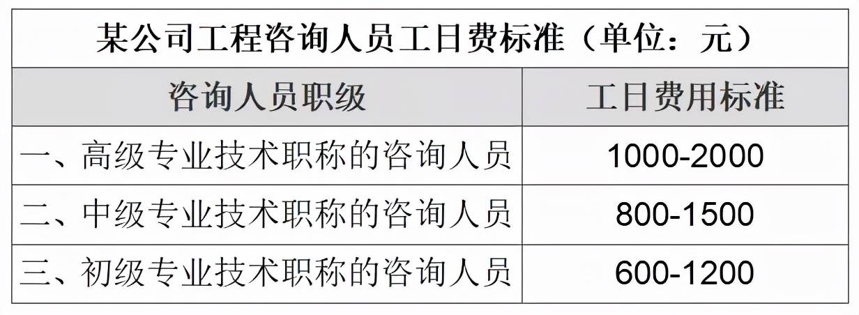 表3 工程咨詢?nèi)藛T工日費用標(biāo)準(zhǔn)(單位:元)