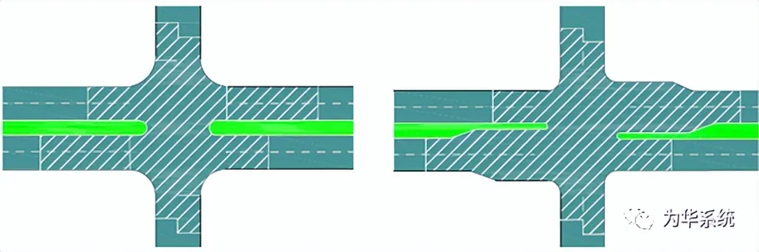 平面交叉口渠化設計是指在交叉口功能區內,運用交通標志、標線和實體設施以及局部拓寬進出口道等多種措施,對交通流進行分流和導向設計,使不同類型的交通、不同方向及不同速度的車輛能夠像渠道內水流一樣,順著一定方向互不干擾地順暢通過,從而使車輛和行人安全有序地運行。通過渠化設計,可以有效解決城市道路的交通擁擠和阻滯,提高行車速度和通行能力,保證交通安全,對于解決畸形交叉口的復雜問題尤為有效。