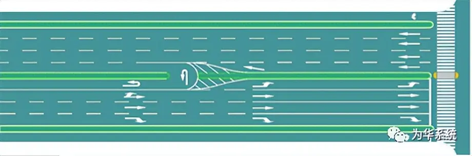 圖6 縮小機非分隔帶寬度并縮小車行道寬度設置右轉專用道