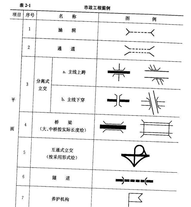 市政工程常用圖例見(jiàn)表2-1~表2-3