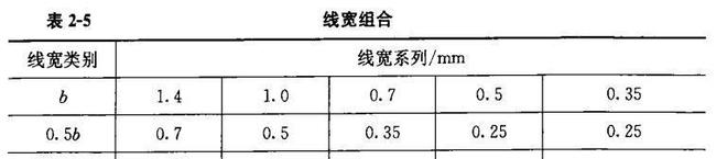 2)每張圖上的圖線線寬不宜超過(guò)3種。基本線寬((b)應(yīng)根據(jù)圖樣比例和復(fù)雜程度確定。線寬組合宜符合表2-5的規(guī)定.