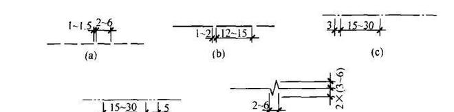 4)虛線、長(zhǎng)虛線、點(diǎn)畫(huà)線、雙點(diǎn)畫(huà)線和折斷線應(yīng)按圖2-3繪制。