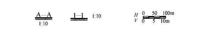 當(dāng)同一張圖紙中的比例完全相同時(shí),可在圖標(biāo)中注明,也可在圖紙中適當(dāng)位置采用標(biāo)尺標(biāo)注。當(dāng)豎直方向與水平方向的比例不同時(shí),可用V表示豎直方向比例,用H表示水平方向比例,見(jiàn)圖2-5(b),