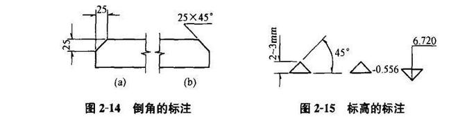 (12)倒角尺寸可按圖2-14 (a)標(biāo)注,當(dāng)?shù)菇菫?5“時(shí),也可按圖2-14(b)標(biāo)注。