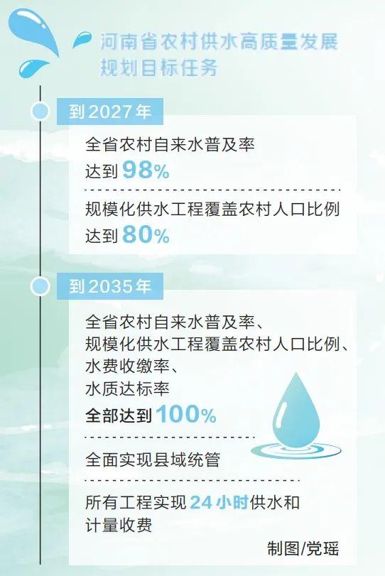 《河南省農(nóng)村供水高質(zhì)量發(fā)展規(guī)劃》印發(fā),2035年自來水普及率達到100%