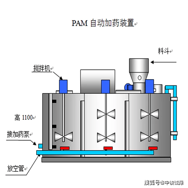 設備包括浸潤器、溶藥攪拌器、加藥泵、稀釋裝置、儀表、管路、管路附件、控制柜。此控制柜既可手動按鈕控制,也可與 PLC控制柜聯動控制。